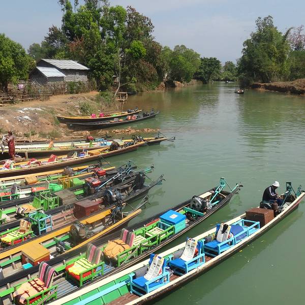 实用 进入狭窄运河后还要行驶很久才能到茵生,但两岸绿树掩映风光无限,河水呈现碧玉般的怡人绿色,河道上...茵生,Inthein,恬静的热带田园、蜿蜒狭窄的运河,芦苇竹林鸡犬相闻,山顶上金光熠熠的佛塔塔林……茵生有着独特的氛围。主要的景点从山脚下的良奥哈沿阶梯上山到瑞因登佛塔,那是四五个世纪以来人们不断修建的信...茵生,Inthein,恬静的热带田园、蜿蜒狭窄的运河,芦苇竹林鸡犬相闻,山顶上金光熠熠的佛塔塔林……茵生有着独特的氛围。主要的景点从山脚下的良奥哈沿阶梯上山到瑞因登佛塔,那是四五个世纪以来人们不断修建的信仰见证。有些掩藏在草木中,摇摇欲坠倾斜到离奇的程度,有些则是刚刚修建的或白色或金色的佛塔,从中可以感受到数世纪以来生生不息的信仰力量。佛塔内的佛像都显然具有不同于缅甸内地的独特掸族风格。茵生有可供就餐的地点,但价格偏高。在茵生还可以看到着传统服装、使用传统工具的掸族居民。由良瑞来此,从育瓦玛离开因莱湖区,进入狭窄运河后还要行驶很久才能到茵生,但两岸绿树掩映风光无限,河水呈现碧玉般的怡人绿色,河道上的简易竹桥、河边的木棚船坞、洗衣玩耍的妇女孩子,可以说是因莱湖最值得去的景点。包摩托艇游因莱湖含茵生一天20000缅元。 展开