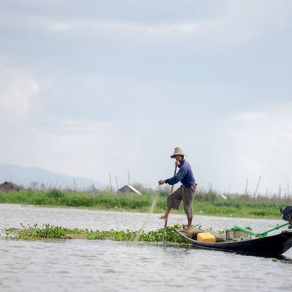 离开茵汀村后我们前往跳猫寺,不知道是偶然遇到,还是每日这里都有渔夫,在我们途径的路上,三五个渔夫正在作业。