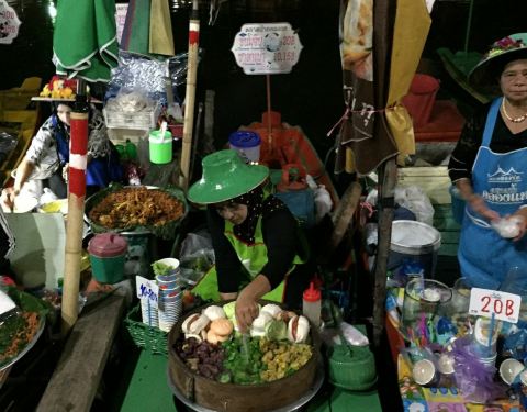 合艾的水上市场是必须要来看看的,大小船只各式各样的食品一字排开,非常的有意思