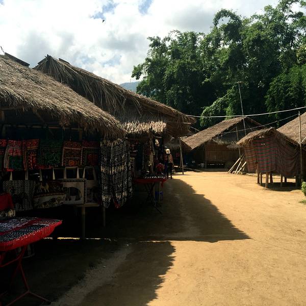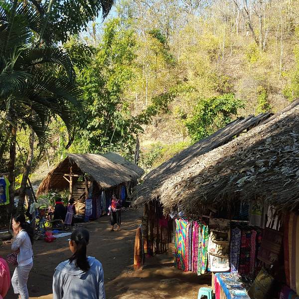 刚到景点就能看到一堆拉游客的牛车,有点臭,我们没有坐,再往里走就看到一个旅行信息的柜台,我们问长颈族怎么走,他告诉我们在里面,要在这里交500铢/人的门票钱。但是我们注意到前面根本就没有收票口,再一个之前也看过其他旅行者的图片,都是在和卖东西的长颈族人合影,并不是参观族内,也没什么体验,既然是刺激游客消费,没理由再收这么高的票钱,我和老公决定先不买票过去看看,需要票再回来买,姐和姐夫在车里等。长颈族景点比较难找,我们在途中又打听了一个泰国人,还是告诉我们得买票,依然没理他,靠路牌找到了长颈族。到了也明白了,根本没人收票,两排商户卖着自己家特色产品,每家老板都是长颈族的女人,看到我们来了生意也来了特别开心。给姐夫发定位,车都开过来了o(︶︿︶)o ,靠着坚定的心躲过一个坑。