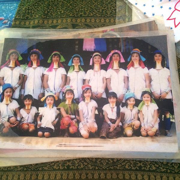 很早以前在书本看过看过长颈族介绍,今日终于目睹,觉得很残忍。她们戴颈圈不是为了脖子越长越美,而是为了抵抗野兽的侵害。她们是缅甸人,缅甸不要她们,泰国收留,但是终身不得出村。她们没有自己文字,所剩人口不多,女性都选择不生育,因为太艰辛。从2岁开始戴颈圈到45岁,铜质,很重。这个姑娘颈圈里面的蓝布是为了隔热。 展开