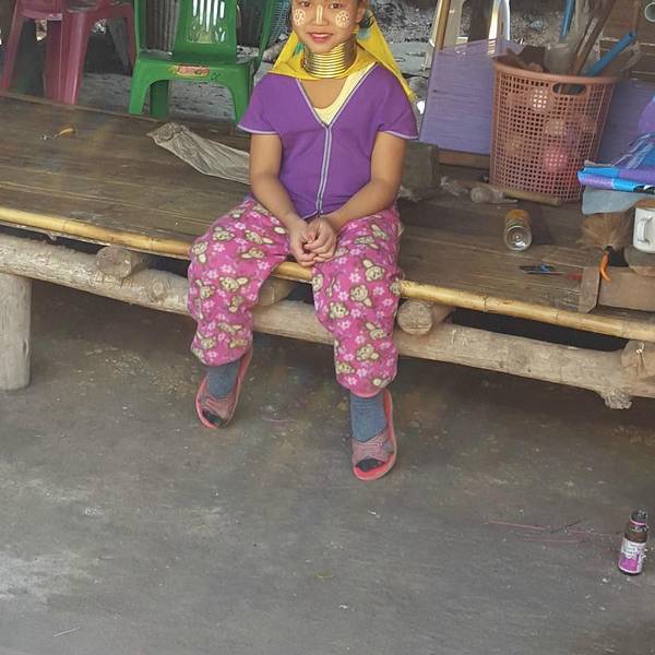 很早以前在书本看过看过长颈族介绍,今日终于目睹,觉得很残忍。她们戴颈圈不是为了脖子越长越美,而是为了抵抗野兽的侵害。她们是缅甸人,缅甸不要她们,泰国收留,但是终身不得出...拍照20泰铢,我们都多给许多。