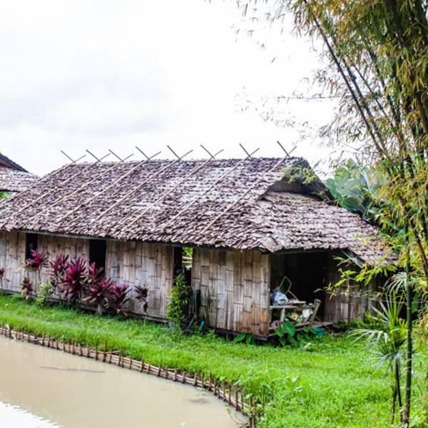 村子的外围看着颇为简陋,一座竹木编织的小门,便是村子的正门。然而,进入其间,四处被稻田所包围,几所竹子搭建的高脚屋,坐落在一片绿色之中,环境显得格外宜人。