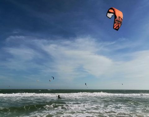 这里海边的风浪非常大,海水也不是特别蓝,但是这里有非常多的老外在玩滑翔伞冲浪,可能风浪大反而适...在越南南部美奈的海滩,这里海边的风浪非常大,海水也不是特别蓝,但是这里有非常多的老外在玩滑翔伞冲浪,可能风浪大反而适合进行这样的运动。海边贝壳也很多,海水很干净。