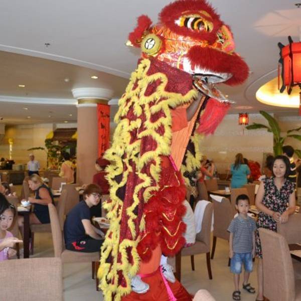 珍珠岛上的儿童水上乐园,珍珠岛上的竹林寺大佛,舞狮庆祝中国年