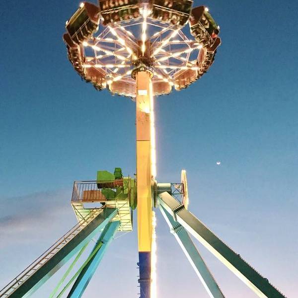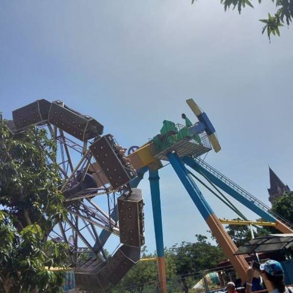 (矿山车+跳楼机+大摆锤,傍晚时间去的,几乎没什么人排队,每个项目到了就能玩)