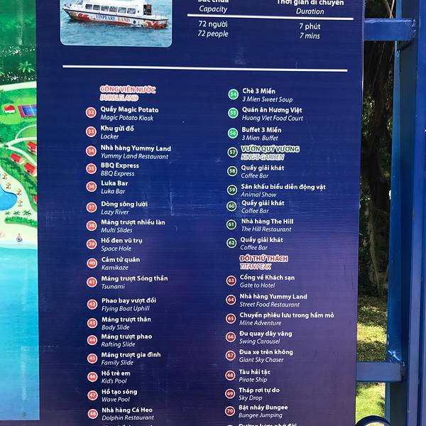 实用 夜景也不错,跨海缆车最晚是8点,如果停运可以坐快艇,温馨提示,如果累了在海洋生物馆里,厕所的位...早上从九点用餐,九点半出发,不要带吃的什么的,从岛上买就可以,和国内差不多。可打车可飞猪网约,如果你住市区,距离相差不会很远,价钱也都差不太多,大约20多分钟到达。下车就是跨海缆车兑换处,淡季人不会...早上从九点用餐,九点半出发,不要带吃的什么的,从岛上买就可以,和国内差不多。可打车可飞猪网约,如果你住市区,距离相差不会很远,价钱也都差不太多,大约20多分钟到达。下车就是跨海缆车兑换处,淡季人不会很多,上缆车需要等一会但是也很快。❗️到达岛上可以先去水上项目那里租一个柜子,100000越南盾一个,最晚到6点,这是我的经验之谈。你可以把东西寄放再选择玩什么,进门处有地图,计划一下玩一天下来会疲惫,建议先去坐那个手滑车,具体叫什么名字我不知道,大家看我的图很好玩。岛上有动物,水上乐园,游乐项目,表演,晚上还有喷泉,应该是7点到7点半,夜景也不错,跨海缆车最晚是8点,如果停运可以坐快艇,温馨提示,如果累了在海洋生物馆里,厕所的位置有按摩椅,可以按摩一会。总之满意有机会还回来的,城堡晚上很美,希望我的推荐对大家有帮助。一天结束! 展开