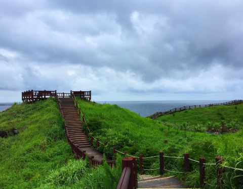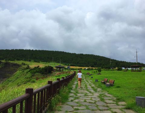 带上相机往山顶爬去,一个海拔不足160米的寄生火山堆,后来才知道这里有两个岳分别名字叫“抹眉岳”与“卵岳”,我登顶的抹眉岳放眼望去整个城山邑的风景尽收眼底,前方是日出峰身后是汉拿山,空无一人的山林,微风徐徐,我放肆的笑了,所谓一览众山小的气概,此时无需登上泰山也能感受。 1、位置 济州岛南部沿岸 与山房山相望 2、交通 只有西归浦市内巴士可以到达 并且1小时1班次 晚上6点以后就没有了 或者打车从西归浦过来大概2W韩元 3、特色 这里曾经作为日本人的战俘营 和韩国新兵训练营 非常有战争的背景历史感 而且很多地方还都保留着当年打仗时候留下的遗迹 以供后人参观~ 除此之外 这里还有马场可以骑马~ 山下有一个小镇子 有几个便利店 除此之外非常冷清~ 4、注意事项 这里交通不便 不要耽误了最后一班公交车 也且也很难打到车~