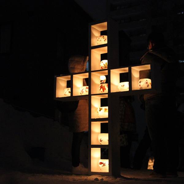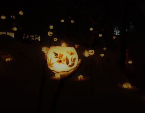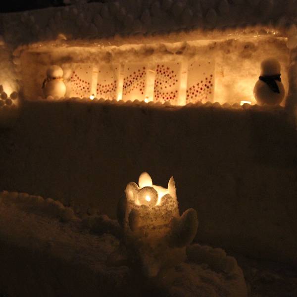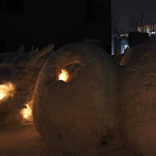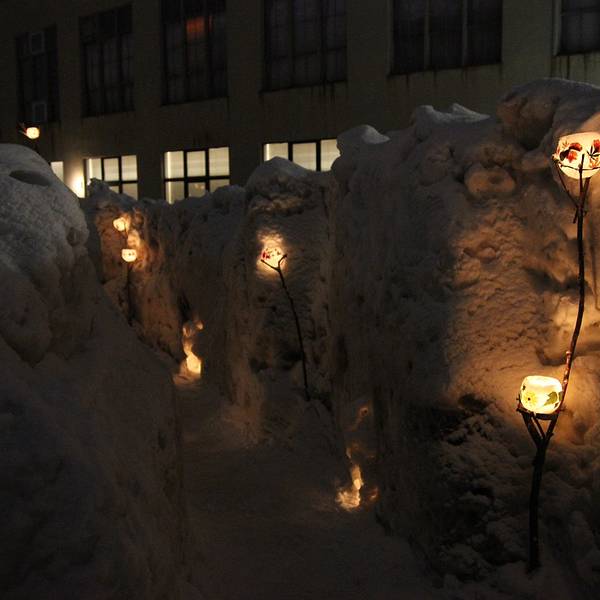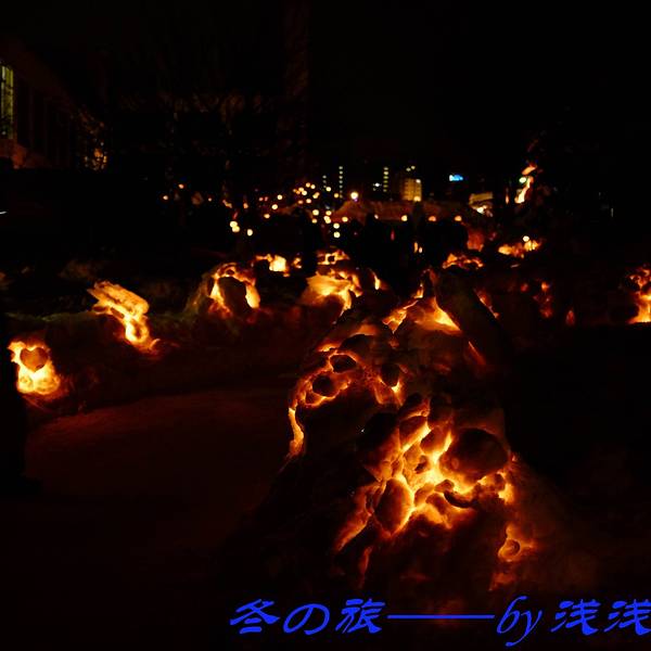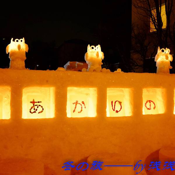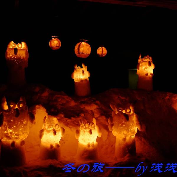 好像是之前的一个铁路线叫手宫线,现在已经废弃了,其中一点旧址就用来每年办这个雪灯节~第18回了~好多猫头鹰~还有远方的星星点点走到这里,雪灯之路就彻底走完了~