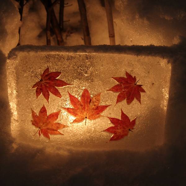 只是就木有自己了再往前,发现雪灯之路依旧还有蛮长的距离~这里是让小朋友们玩儿捉迷藏走迷宫的么有木有一种灵异的赶脚。雪灯之路不只有雪灯,还有冰灯~这是去年专门留下的红叶么这就是每年的主会场所在地了