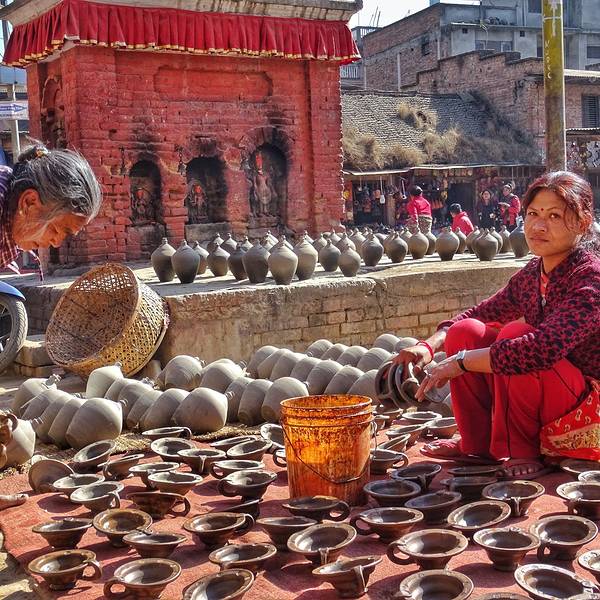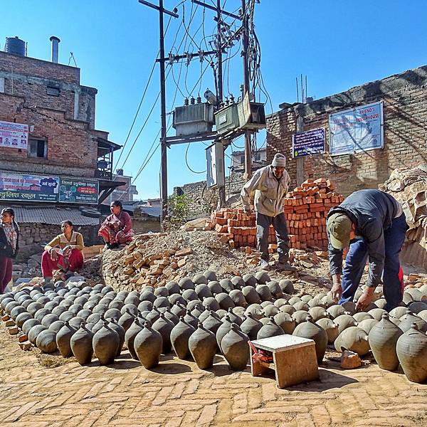 一路上兜售工艺品的商铺非常多,这里的好多木雕艺术也是在加德满都看不到的沿小路向西南方向走便可到达陶工广场(Potters’ Sq),因为震后修复的关系,广场有一部分被水泥沙石占用了,还有一部分堆放着待晾晒的谷物,剩下的地方则堆满了格式陶器,一排排黏土陶罐摆在阳光下晾晒。广场周围...沿小路向西南方向走便可到达陶工广场(Potters’ Sq),因为震后修复的关系,广场有一部分被水泥沙石占用了,还有一部分堆放着待晾晒的谷物,剩下的地方则堆满了格式陶器,一排排黏土陶罐摆在阳光下晾晒。广场周围有出售成品陶器的商店,不妨瞒下脚步去看看,也许就会发现心属的作品。 展开