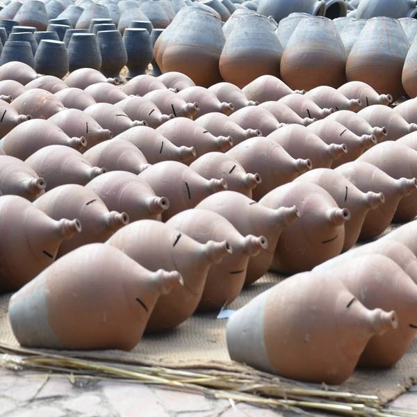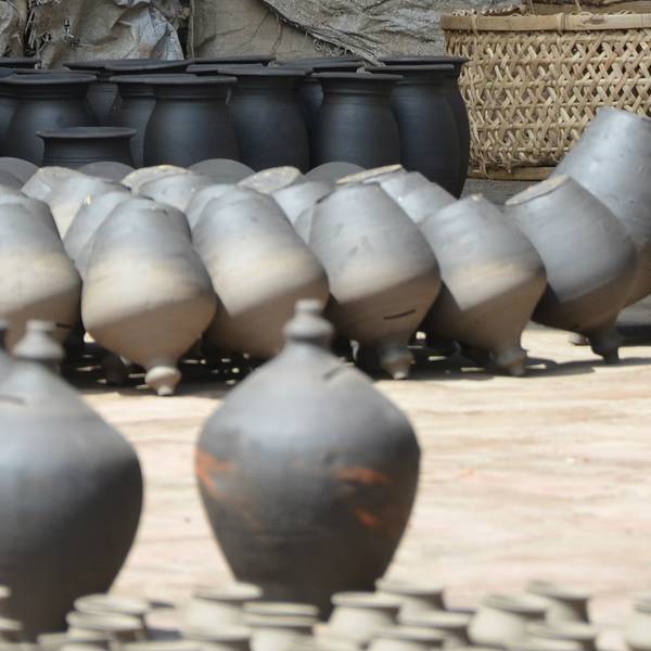 远远就看到一群当地人,围在一起聊天说笑,过去一瞧,原来有人正在打磨一个大象的工艺品,我蹲在她旁边看,周围的人并没有因为我的加入而尴尬、好奇,...来到陶器广场看到满地都整齐排列着做好的陶罐,存钱罐居多。
