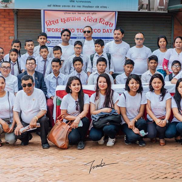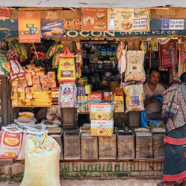 这种店一般很小,上层是住户...从杜巴广场出来,在前往孔雀窗的路上,遇到一群当地学校做活动的老师和同学,原来今天是“World no tobacco day”。走过一个集市,沿路都是各种小店,香料、食物密密麻麻的放在店口。