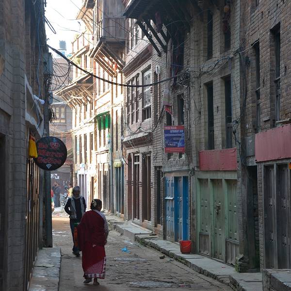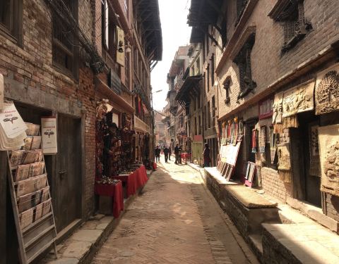 房主几位尼泊尔小伙很热情的给我们指路,于是接下来我们在巴德岗凹凸不平的石板路上晒着太阳拖着行李箱上坡下坡走了半个小时走到了巴德岗公交总站。说是公交总站,其实就是一个小巷,没有人售票,没有路牌,我们只有稀里糊涂的问每一位路人和司机应该坐哪辆车才能到达加德满都。
