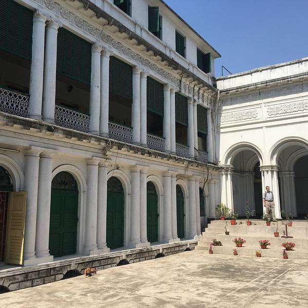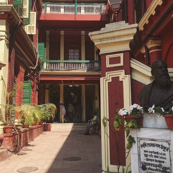 我们是从new market 坐出租车过来的,约20人民币。也可以坐地铁到GIRISH PARK站,再步行到达。下图这栋楼就是泰戈尔故居的入口了,一楼是售票的地方,上楼需要脱鞋。里面有很多保安巡逻,严禁拍照。楼里有路线指引,每间房都有泰戈尔不同时期的生活痕迹,有照片也有书信等,里面还有泰戈尔到访中国的记录。一楼的露天广场,在泰戈尔年轻的时候会跟家人在这一起排戏、露天演出。 展开