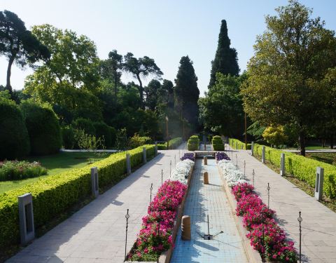 这是一典型的波斯花园格局,波斯人对于天堂的想法付诸现实,其中水和树是波斯庭院两个重要的元素这是一典型的波斯花园格局,波斯人对于天堂的想法付诸现实,其中水和树是波斯庭院两个重要的元素。这里也是设拉子大学的植物园。