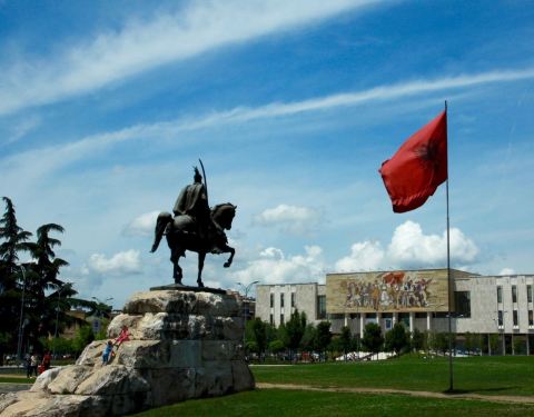 ...是阿尔巴尼亚最大的广场,广场的中央竖立着奥斯曼帝国的民族英雄斯坎德培的骑马雕像,非常的高大英武