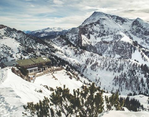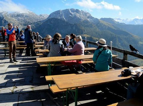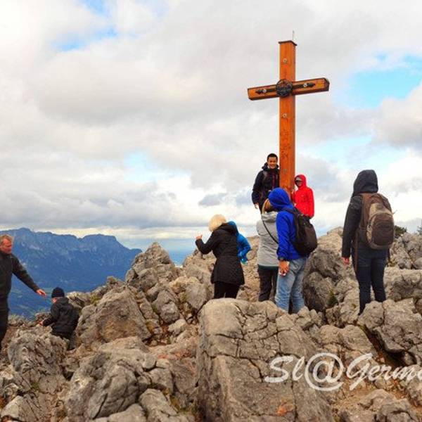 Jennerbahn耶拿峰,从国王湖码头步行约分钟到达缆车站,坐缆车上去,中途有一站不要下来,直接到最终点1800米处,缆车下来穿过山顶餐厅徒步15分钟登顶1874米处十字架。