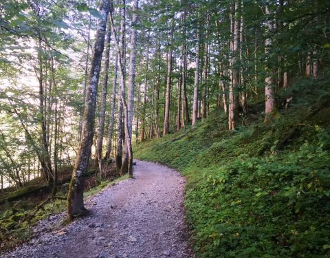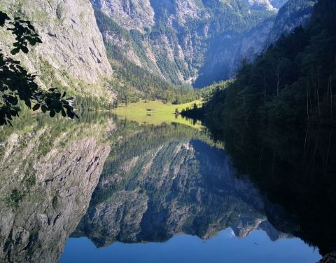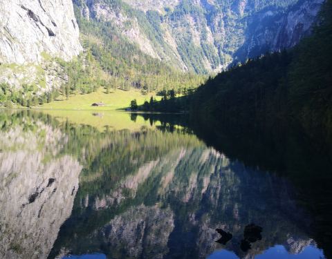 非常漂亮的一個地方,從碼頭沿著小徑步行,繞著上湖走,可見到湖水倒映著山景,加上光線折射,湖水會呈現不同顏色,走到盡頭,有一個牧場和販售牛奶、輕食、啤酒等的牧場小屋,在那坐著休息、看著美景並吃喝東西,是一大享受。