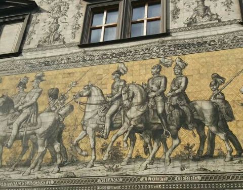 德累斯顿王宫是德国较为恢弘、重要的宫殿建筑之一,1485年起便是历代撒克森王国统家族的居住地。宫殿在二战中曾一度毁于战火,之后按照原貌复原重建。这座宫殿建筑融合了多种建筑艺术风格,鹅黄色的外墙配上红色屋顶和青铜色的圆顶,颇为雍容华贵。 这座巨大的宫殿现在以“艺术科学宫”的形式对外开放,共设有绿穹珍宝馆(Grünes Gewölbe)、新绿穹珍宝馆(Neues Grünes Gewölbe)、画廊(Kupferstich-Kabinett)、军械库(Rüstkammer)和货币馆(Münzkabinett)。此外,还有土耳其商会展览、艺术图书馆等场所也对公众开放,展品内容非常丰富。 绿穹珍宝馆可谓是德累斯顿王宫的镇殿之宝,这个欧洲较大的珍宝馆内展出了上千件珍贵收藏品为保护文物。旧珍宝馆位于一层,展厅地面用黑白相间的大理石铺就,部分墙壁用天鹅绒装饰,十分华美。设有琥珀阁、象牙室、银器室、珍宝室、纹章室等不同主题的展厅。其中宝石厅的四面都配有镀金银镜,十分震撼。 2010年新设的新珍宝馆位于王宫二层,展厅内配备了防晕眩玻璃和先进的照明技术,便于更好地呈现展品的每一个细节。这里主要珍藏了印度莫卧儿王朝时期的珠宝,包括4909颗钻石,红宝石160,164绿宝石、蓝宝石、珍珠等,璀璨夺目。其中一颗雕有185张人脸的樱桃核和用象牙雕制而成的护卫舰(Fregatte, Sign)不可错过。 如果你是绘画爱好者,可以去画廊看一看,这里收藏有图卢兹 - 劳特累克,毕加索、巴塞利兹、丢勒,凡艾克,伦勃朗,米开朗基罗,弗拉戈纳尔和卡斯帕·大卫·弗里德里希等知名艺术家的版画、素描等作品。如果觉得光是远远参观不过瘾,可以去位于王宫三层的学习室近距离欣赏名画。 与军械库毗邻的货币馆则通过一枚枚小小的货币和纪念章展现了德累斯顿的历史文化,同时展出的铸币机器也很有意思。 除了宫殿内的各式展品外,位于北侧靠Augustus路的外墙面上的壁画也是不容错过,在这座长达102公尺的墙上,以磁砖镶嵌画的方式绘有一高8米长的绵长壁画——《君主的行列》(Der Furstenzug),图中的人物即撒克森历代君王的骑马像;使用的磁砖多达2万7000多块,始造于19世纪末、完成于20世纪初,是整座王宫在二次大战幸存下来的少数原物之一。