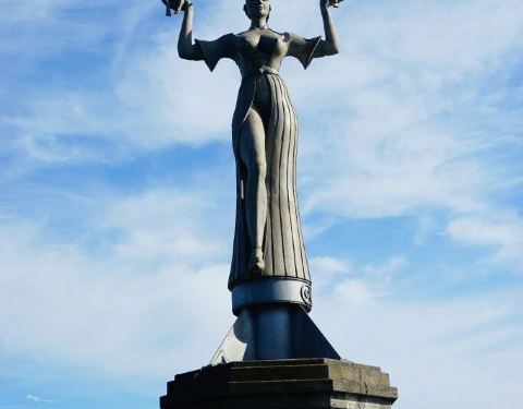 这个雕塑是地标,看着身材蛮好的,有点像妈祖,保佑来往船只平安