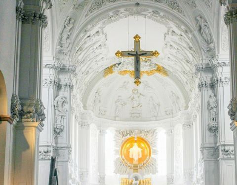 教堂内部十分华丽,许多细节都值得细细品味,内部的气氛和感受需要静下心来,安坐一会才能感悟它是维尔茨堡老城重要的标志,文艺复兴和巴洛克双重结合的建筑,两个高耸的塔楼非常的醒目。教堂内部十分华丽,许多细节都值得细细品味,内部的气氛和感受需要静下心来,安坐一会才能感悟。
