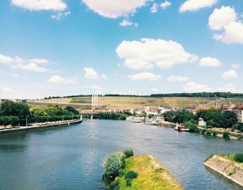 旧美因桥现在完全是一座步行桥,从桥上不仅能望见马林贝格要塞,山上的葡萄园,清澈的美因河流水,还能望见维尔茨堡老城里的教堂尖顶。