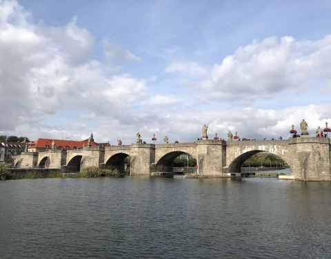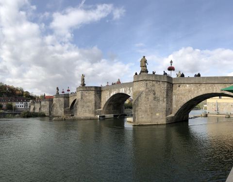 这是横跨在美因河上的一座石头的古桥,也是这个城市游客非常多的一个景点,很多人会选择来这个桥上观看桥两边的各种城堡建筑。还不错。