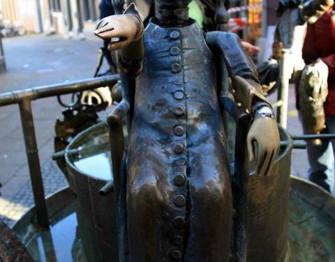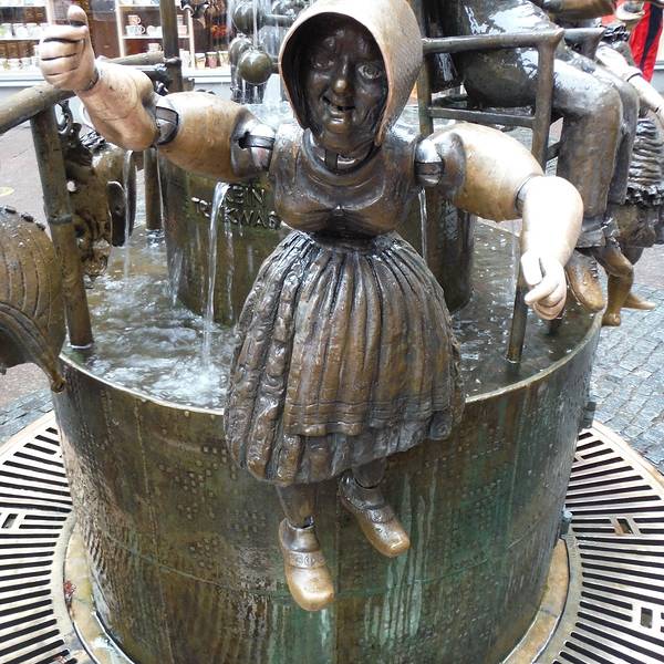 木偶喷泉在大教堂附近,实际上是铜质的,游客们可以任意掰转这些木偶的关节,经常会被一些调皮的游客扮成各种古怪滑稽的造型,非常的有意思。