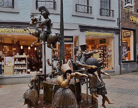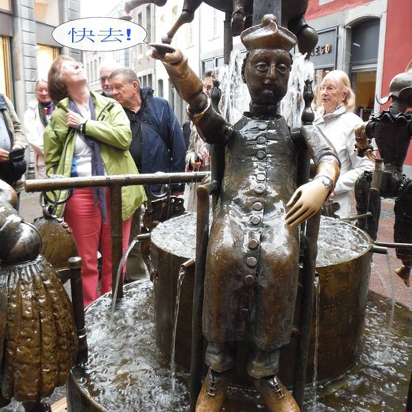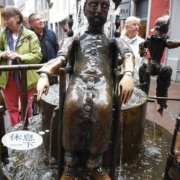 不过这个喷泉比较有趣的就是铜制小人手脚关节可以活动,所以喷泉不只是观赏,还可以好好把玩一下木偶喷泉就在亚琛大教堂旁边,周围全是商业步行街,实际上就是一个街边小喷泉。不过这个喷泉比较有趣的就是铜制小人手脚关节可以活动,所以喷泉不只是观赏,还可以好好把玩一下。