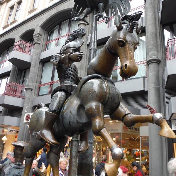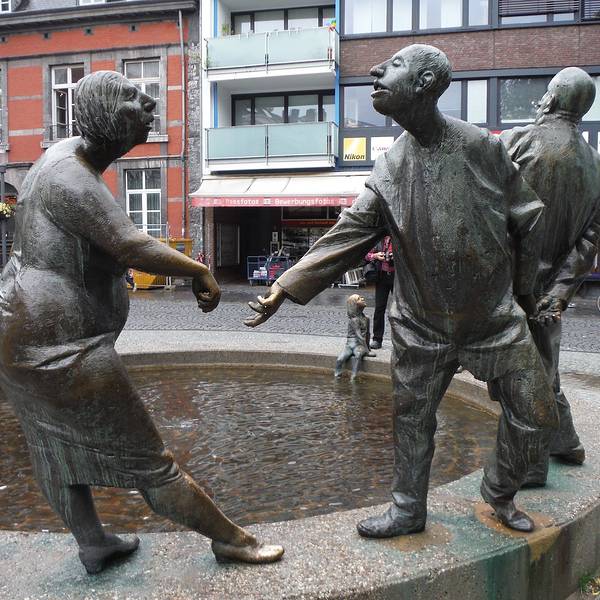 而且非常栩栩如生。是个非常有特色的地方,好像只有亚琛市才有这么有趣的地方,小朋友都很喜欢之前去了很多德国城市,但是从来没碰见,就在这市政厅广场前面。是个非常有特色的地方,好像只有亚琛市才有这么有趣的地方,小朋友都很喜欢。这个喷泉的塑像是用青铜做的。而且非常栩栩如生。