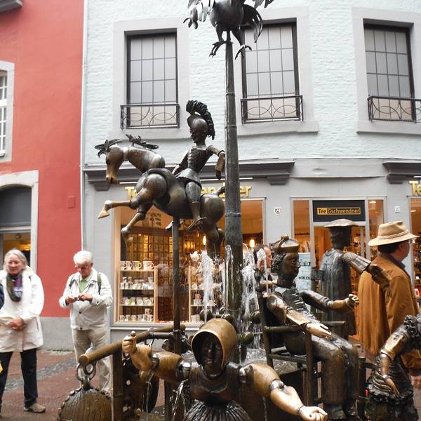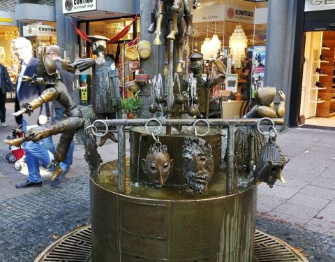木偶喷泉就在亚琛大教堂旁边,周围全是商业步行街,实际上就是一个街边小喷泉。不过这个喷泉比较有趣的就是铜制小人手脚关节可以活动,所以喷泉不只是观赏,还可以好好把玩一下。
