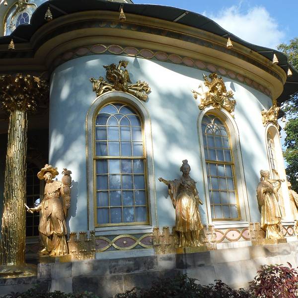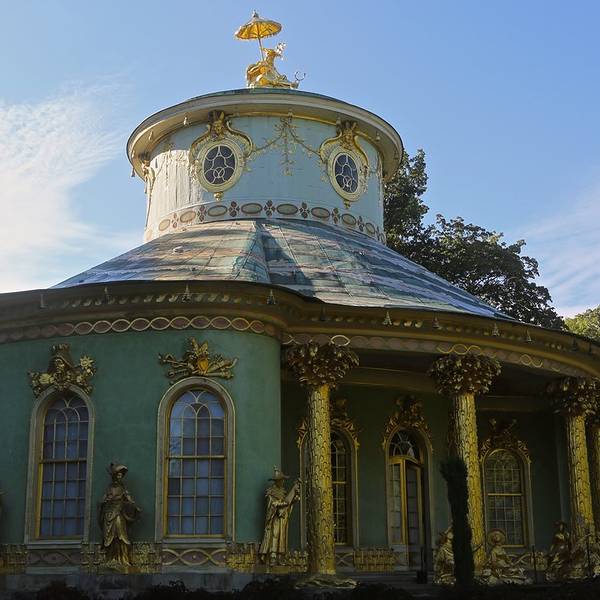 在欧洲许多皇宫都有一幢这样的建筑。建筑本身虽然不大,但是造型都很特别,里面也收藏了東方的陶瓷器。中国茶楼(Chinesisches Haus)的造型非常特別
