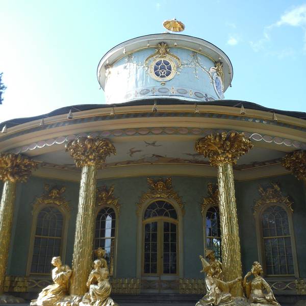 接下来走到中国茶楼(Chinesisches Haus)。在欧洲许多皇宫都有一幢这样的建筑。建筑本身虽然不大,但是造型都很特别,里面也收藏了東方的陶瓷器。