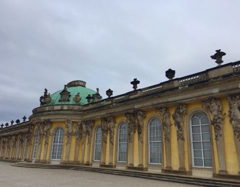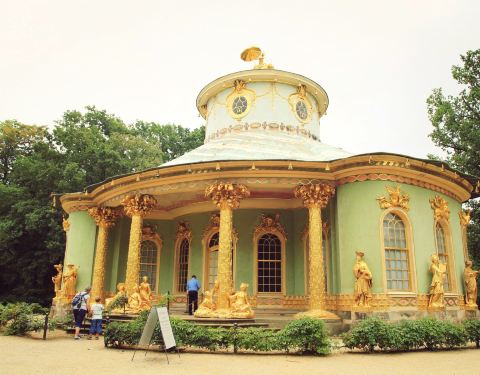 无忧宫,建于18世纪,是一座王宫园林,乃普鲁士国王腓特烈二世模仿法国凡尔赛宫所建。因为他本人非常痴迷于法语,宫名就取自法文的“无忧”或“莫愁”。这是一座金碧辉煌的洛可可风格的宫殿,因为当年大帝的要求就是不需要多雄伟,更多是要满足他个人需求的私密居住宫殿,一座不必走很多台阶就可以到达宽敞露台并到达花园的,和大自然无限接近的个人宫殿。事实上建成后他也在宫殿度过了他的后半生。无忧宫中央部分呈圆弧形,屋檐上有sans souci英文,柱子突出外墙,上面是各种体态的女人雕像,都是一手往上撑着屋檐,下半身是波浪状的裙子,很有力的美感,很显眼。宫殿下梯形阶梯旁的葡萄藤蔓是我觉得最美的地方花园里还有一座六角凉亭,金色的色柱、伞状盖顶、落地圆柱结构,被称为中国茶亭,其实外观看起来就是个鸟笼,还是很漂亮的。【温馨提示】①无忧宫内观不能摄影。室与室之间,有专人看管。打开后一道门,则关上前一道门。较之无忧宫“母本”法国凡尔赛宫,无忧宫管控更加严格,德国人以他们惯有的古板,保护着他们视为珍宝的这座瑰丽的文化遗存。②从柏林过来还是很方便的,可以乘坐城铁、bus,乘车一定要买区域包括C的,或者ABC票。还可以骑车,据说时间更省。③宫殿给我的第一个感觉就是有点像凡尔赛宫啊,好奢华,金灿灿的闪瞎眼,最美的是中央宫殿下面成阶梯状的葡萄园,墙壁上挂满了绿油油的叶子,很适合拍照。宫殿前的草坪面积也很大,其实挺漂亮的,有时间的话可以把这里列入行程。我们时间有限,没有进内参观,但外面已经挺美了。④我们早上9点到了,清晨的阳光加上没人,更能感受到公园的幽静美。 展开