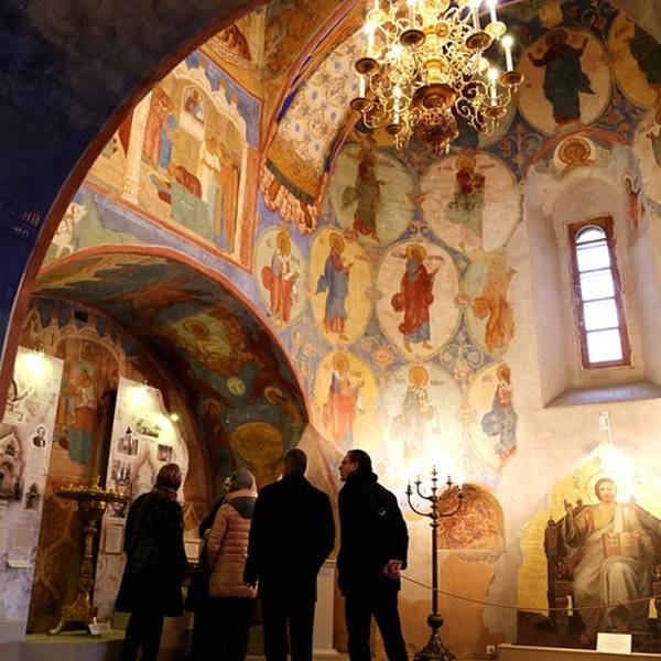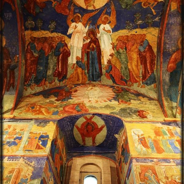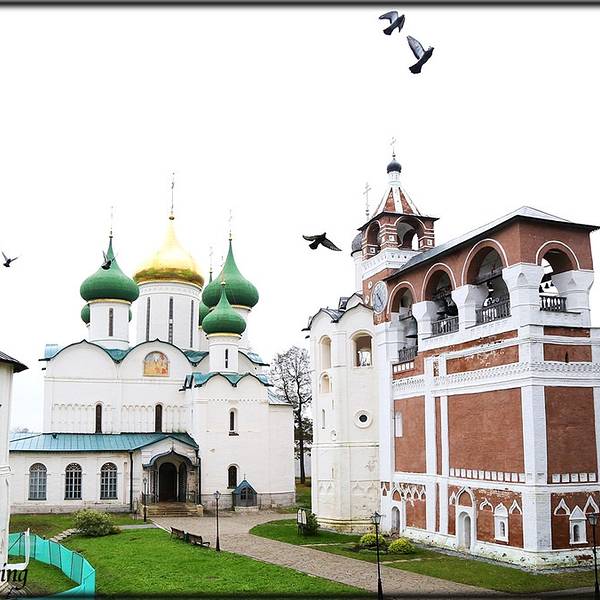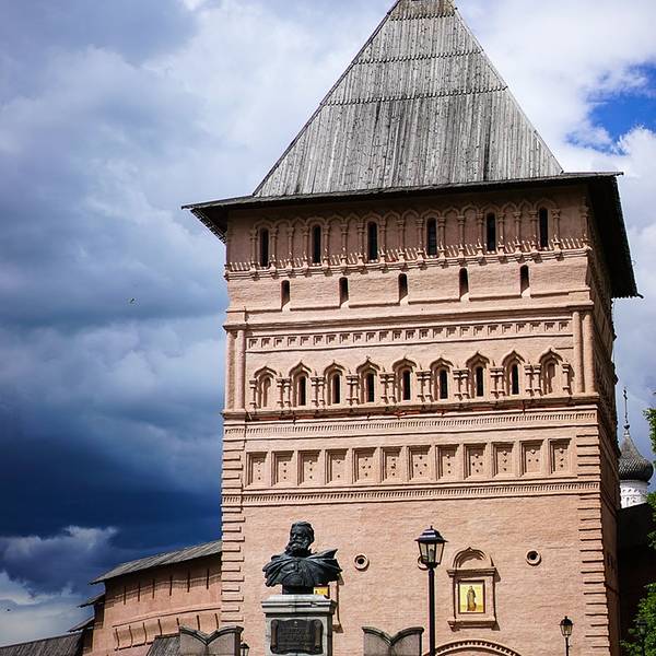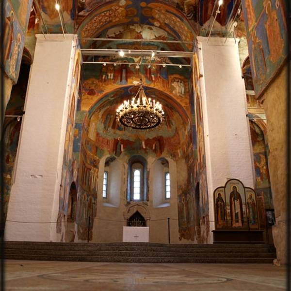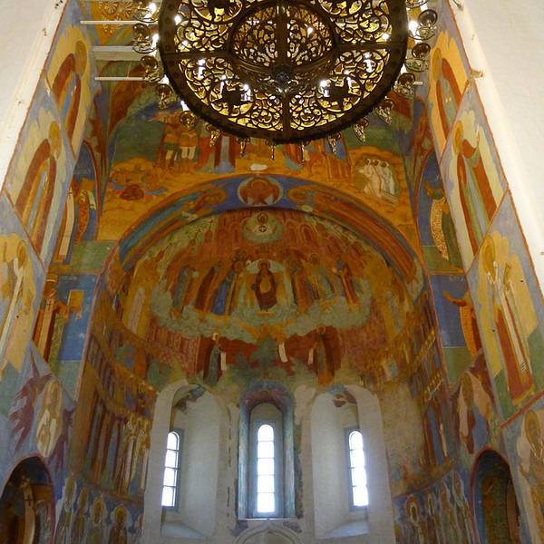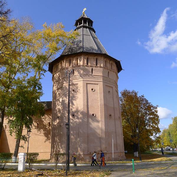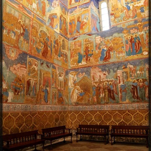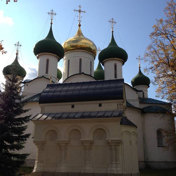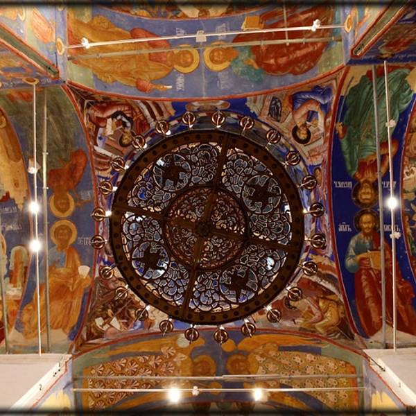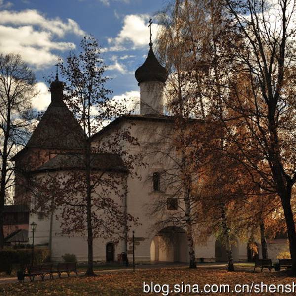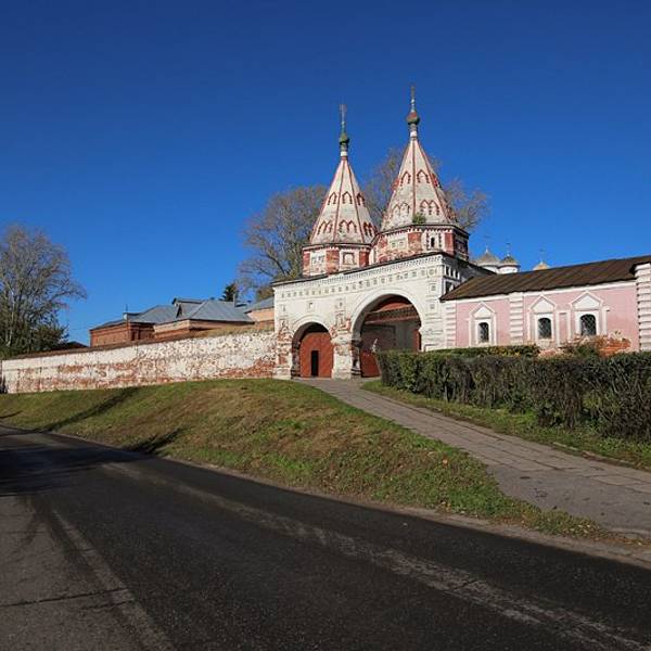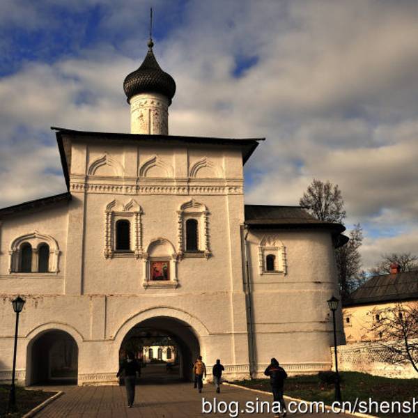 叶夫菲米救主修道院的钟楼是瓦西里三世为了庆祝期盼已久的儿子(即后来俄罗斯第一位沙皇恐怖伊凡)诞生而造。每天整点的时候,这儿会有教士表演传统的敲钟演奏。教堂拥有7个颜色鲜丽的葱顶,修道院的墙壁上有17世纪艺术成就很高的水彩壁画。另外在这里还可以看到过去的监狱,以及僧侣宿舍。