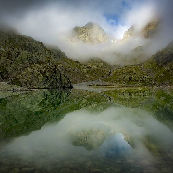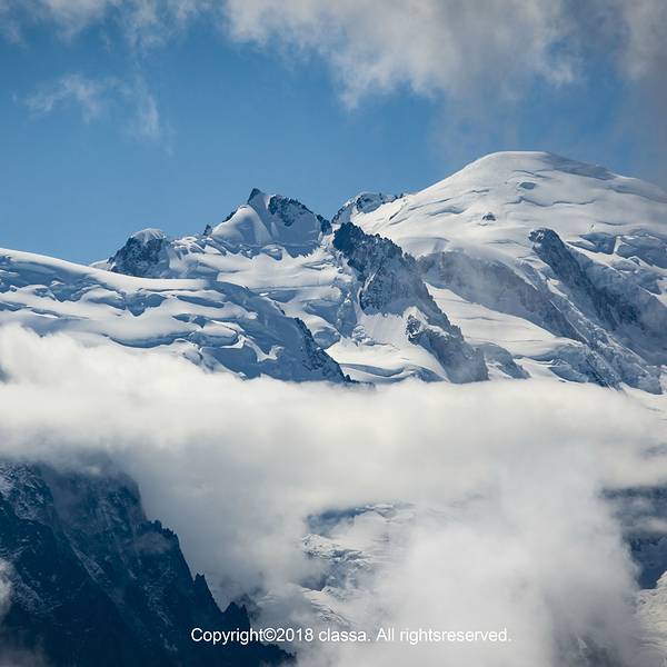 说起阿尔卑斯山,一直是欧洲人心中的秘境。因为这座横亘在欧洲中南部的最大山脉,覆盖了七个国家22万平方公里的面积。如果对于国人来说,黄河长江是我们的母亲河,那么在欧洲人眼中,阿尔卑斯山就是他们的母亲山。不仅是因为它的高,它的宽广,更是因为它的美丽。勃朗峰作为阿尔卑斯山的最高峰,虽然不能摘取欧洲最高峰的桂冠,但是西欧最高峰也足以证明它的伟岸和壮观。勃朗峰就是一个神勇的卫士,在守护着这片土地的安宁;勃朗峰就像一位母亲,在养育着这片土地的生命。经过了三天的TMB行程,我们逐渐熟悉了勃朗峰的风景,也了解了这座大山的险峻。无论是垂直海拔500米,攀升角度超过60度的极限攀升,还是碎石漫布的陡坡下降,给我们带来了一次又一次的欢乐。而随着时间的推进,勃朗峰的精华部分也逐渐展现在了我们的面前。 在靠近霞慕尼小镇的另一端,也就是勃朗峰的对面的山上,有着众多的湖泊,这些冰川融水汇成的湖泊在山区里可以随处可见。其间不乏秀丽多姿者,似镜子一般,像宝石一样,在云雾中隐现,在山坳中绽放,为这片天地平添了很多色彩。而这些湖泊中,有一个名叫Lac Blanc的湖泊,却鹤立鸡群般的越众而出,站在了前端。这个翻译成中文叫做白湖的湖泊,论起容颜比不上jovat湖的色彩斑斓,论起面积比不上安纳西湖的壮观,论起清澈比不上依云湖,但是白湖却有着一样优势是这些湖都无法比拟的,那就是优越的地理位置。换个通俗点的说法,白湖是观赏勃朗峰最美的平台。这个神秘的高山湖泊,海拔位于2352米的高度。虽然海拔不高,但是由于是山口的位置,气候变化的非常迅速。前一秒还是晴空万里,后一秒就已经被云层包围了。不深的湖水,可以清晰的看见湖底的鹅卵石,微风带起细小的波纹,吹在脸上润润的,仿佛一双温柔的大手拂过脸庞。湖边有很多人驻足,一个是因为这里是徒步穿越的必经之路,很多人把这里作为午餐或者是行程的休息点。另外一个自然是等在湖边,守候那份美景的到来。来到这里看美景还真是要看运气的!天气好的时候,万里无云,此时阿尔卑斯群峰图便会呈现在你的眼前。德鲁峰、梵特峰、大桥拉斯峰、南针峰,还有群山之王的勃朗峰,就像是一个个骑士一般,威武雄壮的排列在画面中。而反方向观看,湖面上远远的倒影着白湖峰,如果不是湖底的石头太容易辨认,你还真分不清哪边是湖水,哪边是山峰。其实最美的时机不是晴空万里之时,而是云开雾散的那一霎那。近处,是眼前的湖泊和孤独的自我,云雾把周围的一切都隔离了开来,你不知道葱哪里来,也不知将往哪里去,一切都消失在了雾中。而远处,一丝阳光透过云层,闪烁在山巅处,随着风势云开,一座座高峰隐现而出。孤独的世界里只剩下了你和湖水,还有高山,这时的你便身处欧洲神话的意境中了。如果幸运,在通往白湖的路上你还能看到很多大自然的精灵,比如说肥硕的土拨鼠,还有灵巧的岩羊。他们总会躲在远处的山石间、草甸旁,边觅食边散步,享受着自己的时光。如果你身边有法国的向导,他一定会让你放低了声音,生怕你吵到这些大自然的宠儿。大概是景色太美,白湖现在已经俨然成为TMB旅行中不可或缺的一部分,有太多的队伍都会来到这里驻足小憩。如果你也是个热爱生活,热爱大自然的人,如果你也到了勃朗峰周围,那么一定要到这里看看。