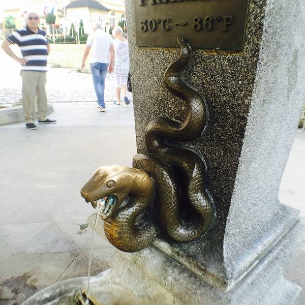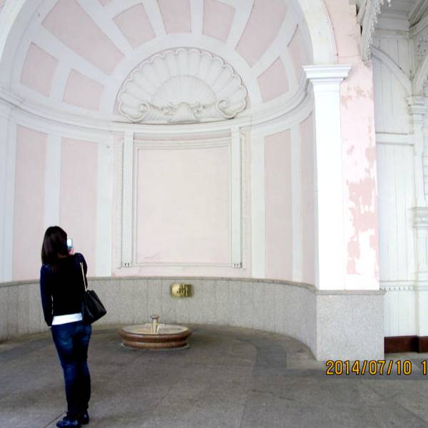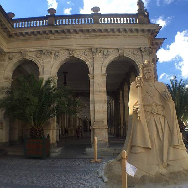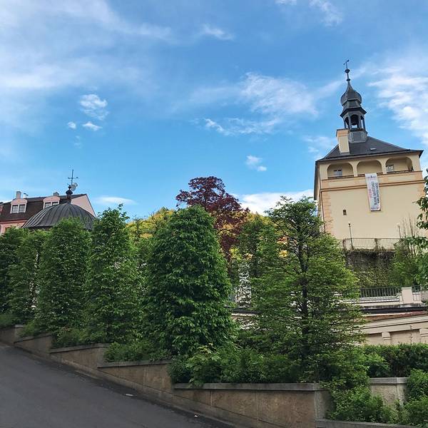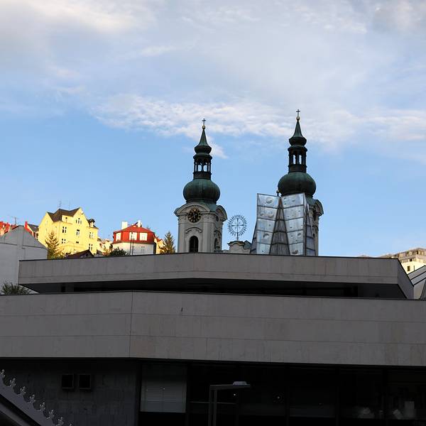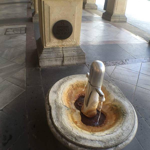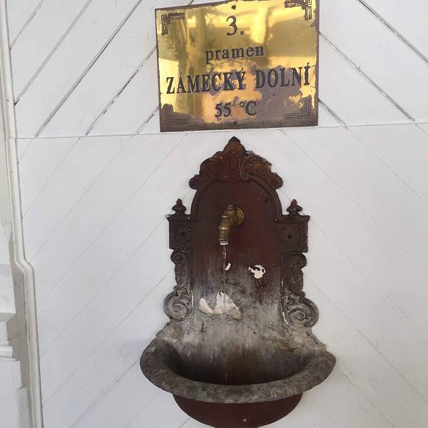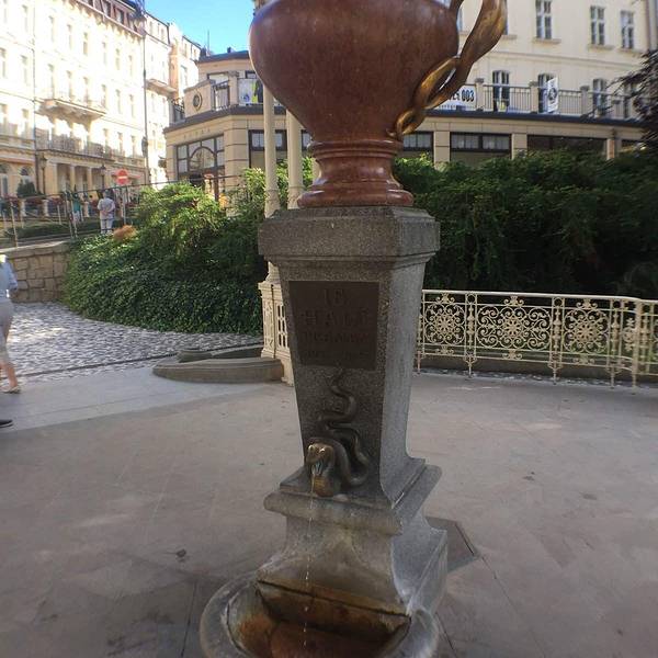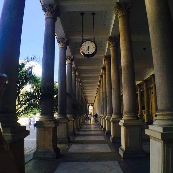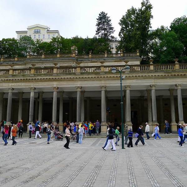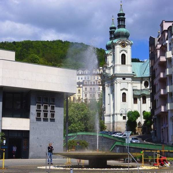 市场温泉回廊和公园温泉回廊同样走精致风,不过它采用的是瑞士木造风格,点缀着无数星芒状的雕饰。位于昔日市政府所在地的市集温泉回廊直到1993年才出现,取代1883年以前另一座由捷克著名设计师Fellner和Helmer设计的温泉回廊。如今回廊下方共有两处温泉出水口,其中位于描绘卡罗维发利发迹壁画下方的出水口,正是名为“查理四世”的温泉。回廊旁还有一座美丽的市集广场,这座迷你广场四周环绕着色彩缤纷的房舍,给人一种童话的感觉。