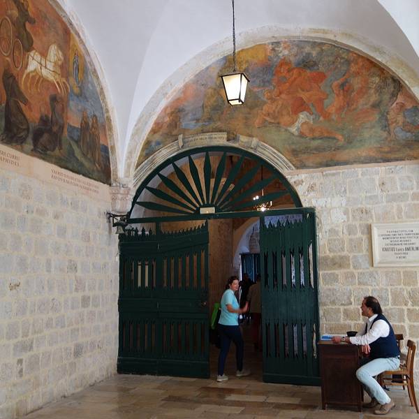 ...1667年大地震,但重建后仍然保留着14世纪的模样,它是达尔马提亚地区最美丽的罗马晚期建筑之一修道院建造于14-15世纪,修道院最初的富丽堂皇毁于1667年大地震,但重建后仍然保留着14世纪的模样,它是达尔马提亚地区最美丽的罗马晚期建筑之一。走进修道院之前,可以先欣赏一下大门上方的圣母怜子图,是由当地...修道院建造于14-15世纪,修道院最初的富丽堂皇毁于1667年大地震,但重建后仍然保留着14世纪的模样,它是达尔马提亚地区最美丽的罗马晚期建筑之一。走进修道院之前,可以先欣赏一下大门上方的圣母怜子图,是由当地大师Peter和Leonard在1498年雕刻而成,而且整个修道院只有门口这座圣母怜子图幸免于当时的大地震。修道院内,有一座1391年开业的欧洲第三古老药店,现在已经成为了药学博物馆,保存了2万多个药壶及手写药方。 展开