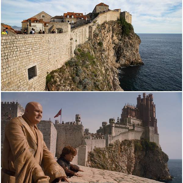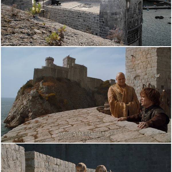 Fort Bokar:在剧中作为君临城城墙而出现,小恶魔曾在黑水湾之战前和瓦里斯在此地商议如何防御。Fort Lovrijenac,有太多熟悉的GOT画面,joffrey的命名日,小指头与Cersei关于权利的对话……因为堡垒下面有一条延伸很长的平台,所以很好认。这个是Lovrijenac堡垒,乔佛里命名日那集的场景都是这里拍的。堡垒顶上可以俯瞰整个老城,门票包含在城墙票里。现在,这两个堡垒所在的港湾都是皮划艇的码头。《权力的游戏》中Lannister家族把唯一的公主弥赛拉送到多恩,弥赛拉的小艇从码头起航,这个镜头就是在这里拍的!当然,电视剧后期还是作了一些处理的,把堡垒加高,显得更有气势!这是第六季中的镜头!小指头与Cersei关于权利的对话……