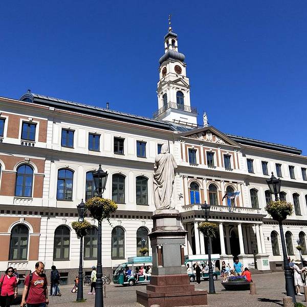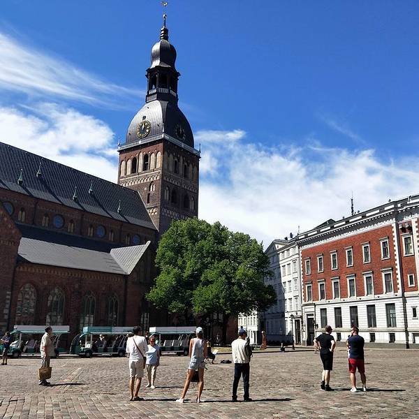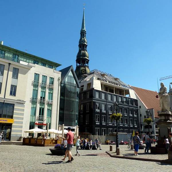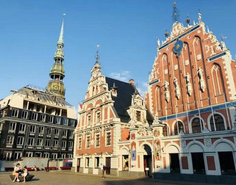 老城中央,还有一座不大的广场,聚集了黑头宫,大教堂等众多精美的建筑,好似一处迷人的童话世界。广场上总是聚集着来自四面八方的游人,将这里点缀得热闹非凡。