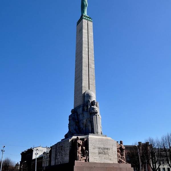 1935年揭幕的这座纪念碑,是拉脱维亚自由、独立和主权的重要象征,是为了纪念在拉脱维亚独立战争(1918年-1920年)期间阵亡的军人而兴建。纪念碑的顶端有一位少女手举三颗星,面向西方,代表了拉脱维亚的三个地区,Kurzeme, Vidzeme和 Latgale,上面的题字是“为祖国和自由”。自由纪念碑高度为42米,上面的雕刻代表了拉脱维亚的历史与文化。里加一般在这里举行公众集会和官方典礼。纪念碑前的士兵换岗仪式很有意思,有时间可以观看下,但在冬天或者天气不好的时候,士兵只在早上护卫纪念碑。