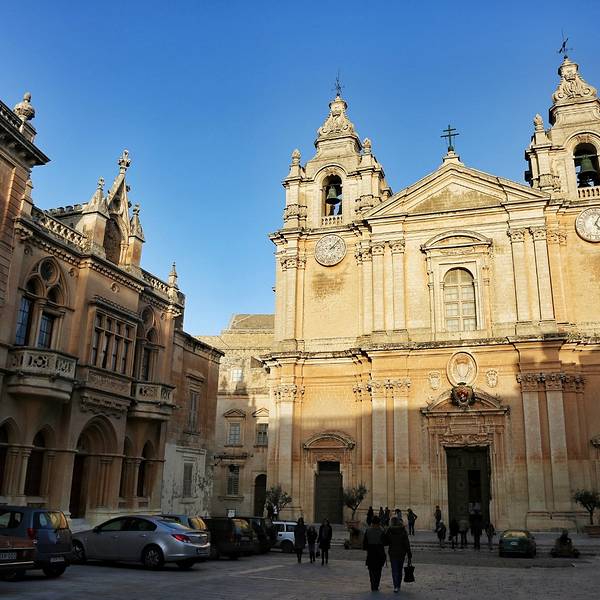 姆迪纳城是马耳他的旧都,位于马耳他主岛中部的一座山顶上。这座城市易守难攻,东面北面都是峭壁,因此在瓦莱塔建成之前,这里都是马耳他的首都。这座中世纪的古城几乎完整的保存着它的中世纪风貌,比如世界上保存最完整的中世纪城墙,至今也依旧安静的街道氛围,没有喧闹的集市没有繁华的商店,有的也只是隐藏在城墙上的小餐厅和小茶馆。