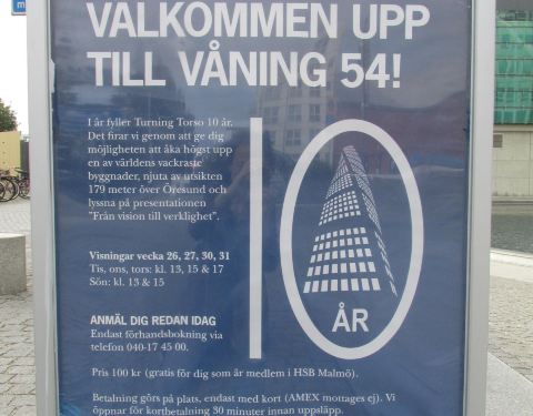 马尔默的旋转大楼是马尔默的地标建筑,也是瑞典的最高建筑。整个大楼像搅麻花一样,非常的有意思。登上大楼可以俯瞰整个城市,介绍上说他曾经是世界第五大高楼,现在估计已经被挤出前十了。