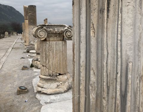 以弗所的克里斯特街是以弗所古城里的主干道,这条大路直贯古城的东西,两边是四五米高的巨大石柱,道路是用宽大整齐的青石板铺就而成,绝对是当时举行重大仪仗仪式的地方。