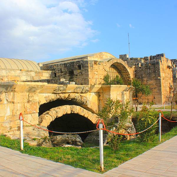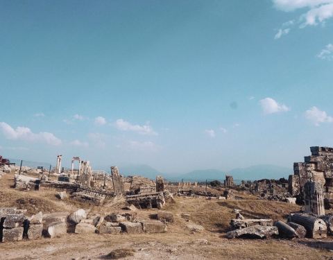 希拉波利斯位于棉花堡之上,建于公元前190年。在古代,温泉连同山脚的石灰石被认为具有奇妙的魔力。该遗址面积不小,古代公墓、大浴室、集市、拱门、圆形剧场、阿波罗神庙遗址、希拉波里斯考古博物馆和古温泉依次由北至南散落其间。从北门售票处进入,首先经过的是一片古代墓地,超过了1000座坟墓。继续往前就是北大浴室,由石头砌成的几座相连巨型拱门是典型的罗马建筑。浴室旁是三座连续的拱门和圆筒形石堆,从这里开始向南是一条贯穿遗址的南北大道,如今这条大道上多是断壁残垣散落,已被栏杆围起。希拉波里斯考古博物馆位于大道南边尽头,这里是一个路口,从山下石灰华一路上来就通往此处。原是南大浴室,里面展示了大量遗址里出土的雕像和石棺,包括古典和古罗马的雕塑艺术品、大量古币及金银首饰等。在此路口左转,就是帕姆卡莱古温泉游泳池。池底是罗马时代遗址,温泉水从底部不断涌出,水质清冽,可以清楚地看到斜躺池底的大理石柱和雕像残片。古温泉附近的圆形剧场保存完好,是值得参观的部分。这是一座公元前2世纪建造的罗马剧场,据说可以容纳多达1.5万名观众。正门处可以找到希腊神话众神的雕像,在大剧场的前面还可以遥望阿波罗神庙遗址。希拉波利斯-棉花堡已被列为联合国教科文组织世界遗产。在日落时分分外美丽,金色的斜阳余晖穿过拱门照射在古老的石头上,那份沧桑之美令人难忘。