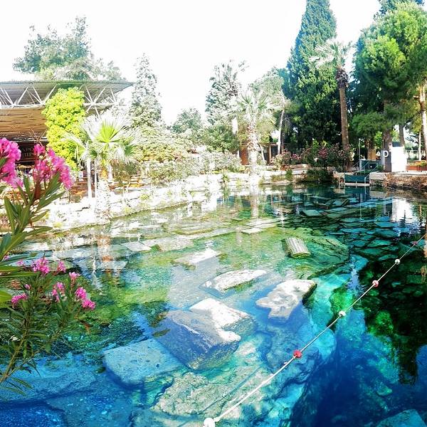 带墨镜的是导游大姐头。门口遗址残垣断壁。遗址跟遗址照一张。遗址对面就是大剧院。遗址参观了一会,就去的温泉浴场了(下去泡收费的),浴场下面都是几千年的罗马遗址,水清澈见底,能不能喝就不知道了(本人尝试过,第一口微甜,第二口就苦了,呸呸呸)。不过因为去的太早没开业在加上时间有限就不能下去泡了(遗憾啊)。温泉温泉水。温泉老婆靓照。温泉合照。温泉温泉全景。温泉从温泉出来走几分钟就能看见棉花堡了。 展开
