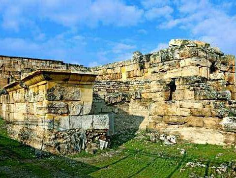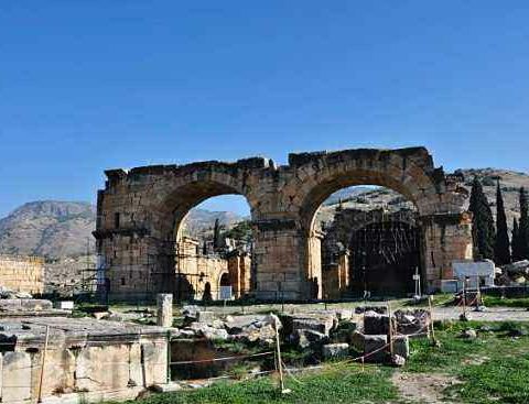 希拉波利斯位于棉花堡之上,遗址面积不小,古代公墓、大浴室、集市、拱门、圆形剧场、阿波罗神庙遗址、希拉波利斯博物馆和古温泉依次由北至南散落其间。