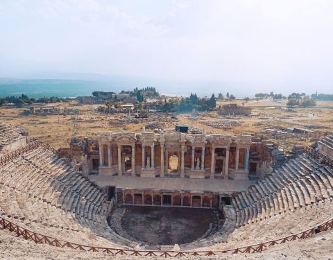 我还是更钟意边上的希拉波利斯古城的遗址。相比较棉花堡赫拉波利斯古城的大浴场,竞技场,街道,市集,都已经踪迹难觅,唯独大剧院,风采依稀可见。相比较棉花堡。我还是更钟意边上的希拉波利斯古城的遗址。