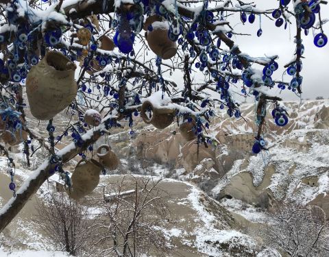 参观了20来分钟就出发前往鸽子谷。山谷附近的树上都挂着土耳其传统灯饰和蓝眼睛。蓝眼睛是土耳其人的吉祥物,不论在哪里,你都...推荐指数:★★★★